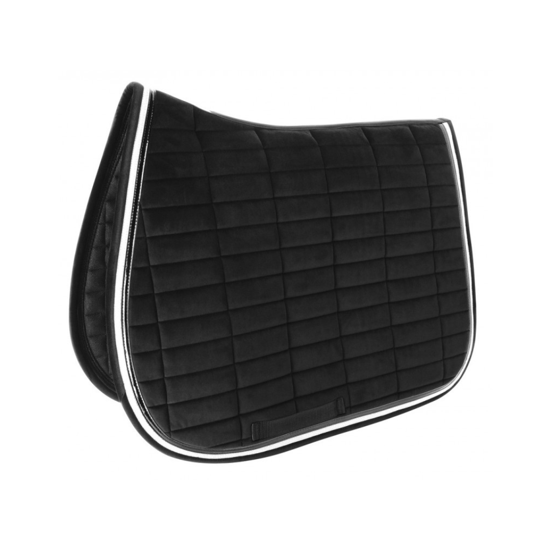Tapis effet velours en 100 % polyester avec surpiqûres rectangulaires. Matelassé de 10 mm de mousse et de polyfill 250 g/m². Orné d’un double passepoil. Doublure en mesh rendant le tapis très respirant.