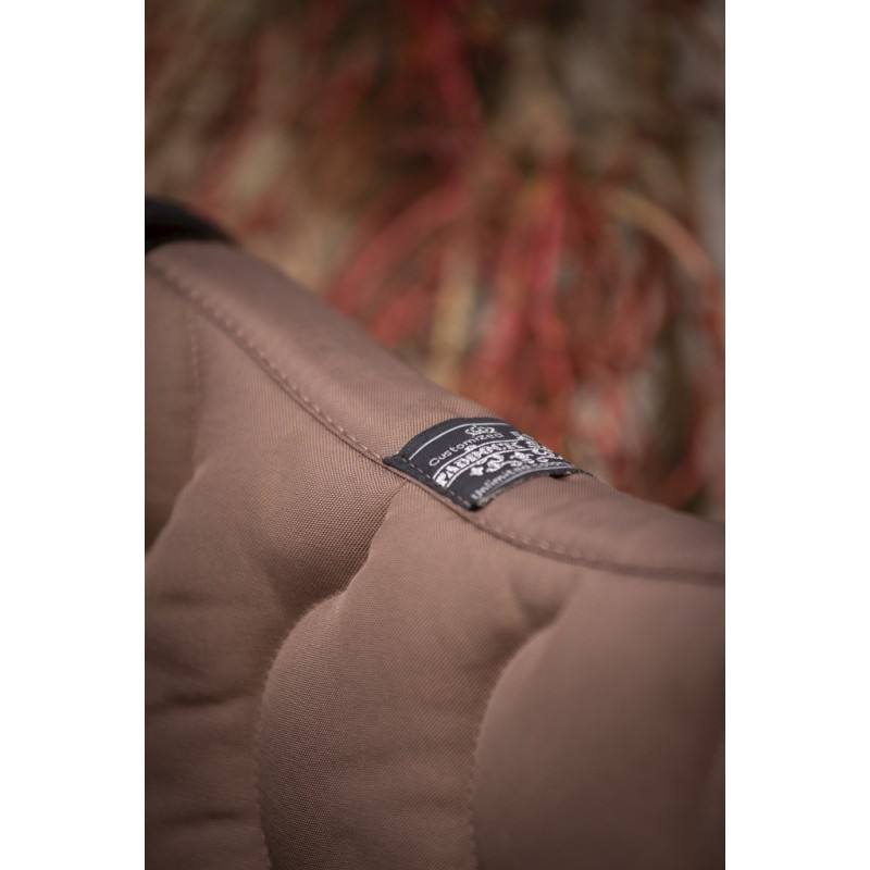 Tapis de selle forme sport fabriqué en France doublé en coton nid d’abeille. Le motif est en forme de vague à la verticale. La forme permet de bien dégarrotter le tapis et la selle. Il y a un passant de sange de chaque côté du tapis. Le tapis est composé de deux épaisseurs de mousse différentes, et d’un tissu en nid d’abeille au contact de la peau du cheval pour une meilleure évacuation de la transpiration. Le logo Paddock Sports est toujours brodé sur le côté gauche du tapis, assorti aux coloris des galons.