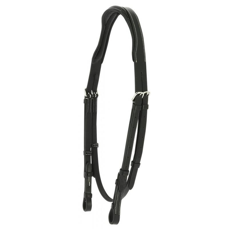 Têtière de forme découpé, doublée cuir vachette matelassé. Petite bordure matelassée sur le dessus.