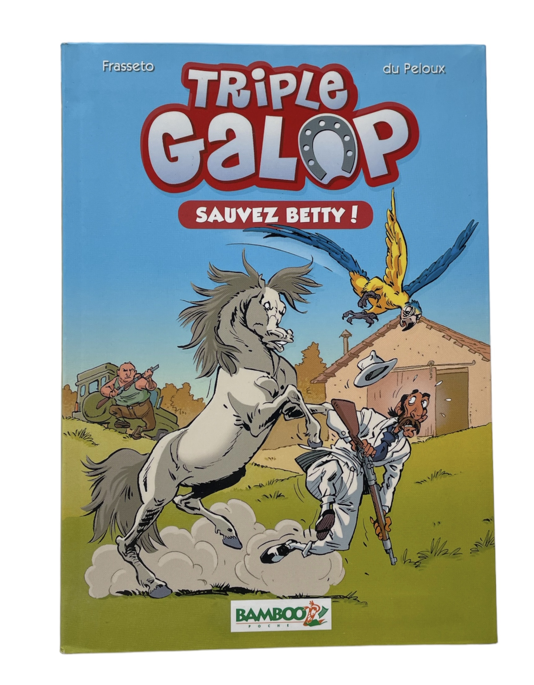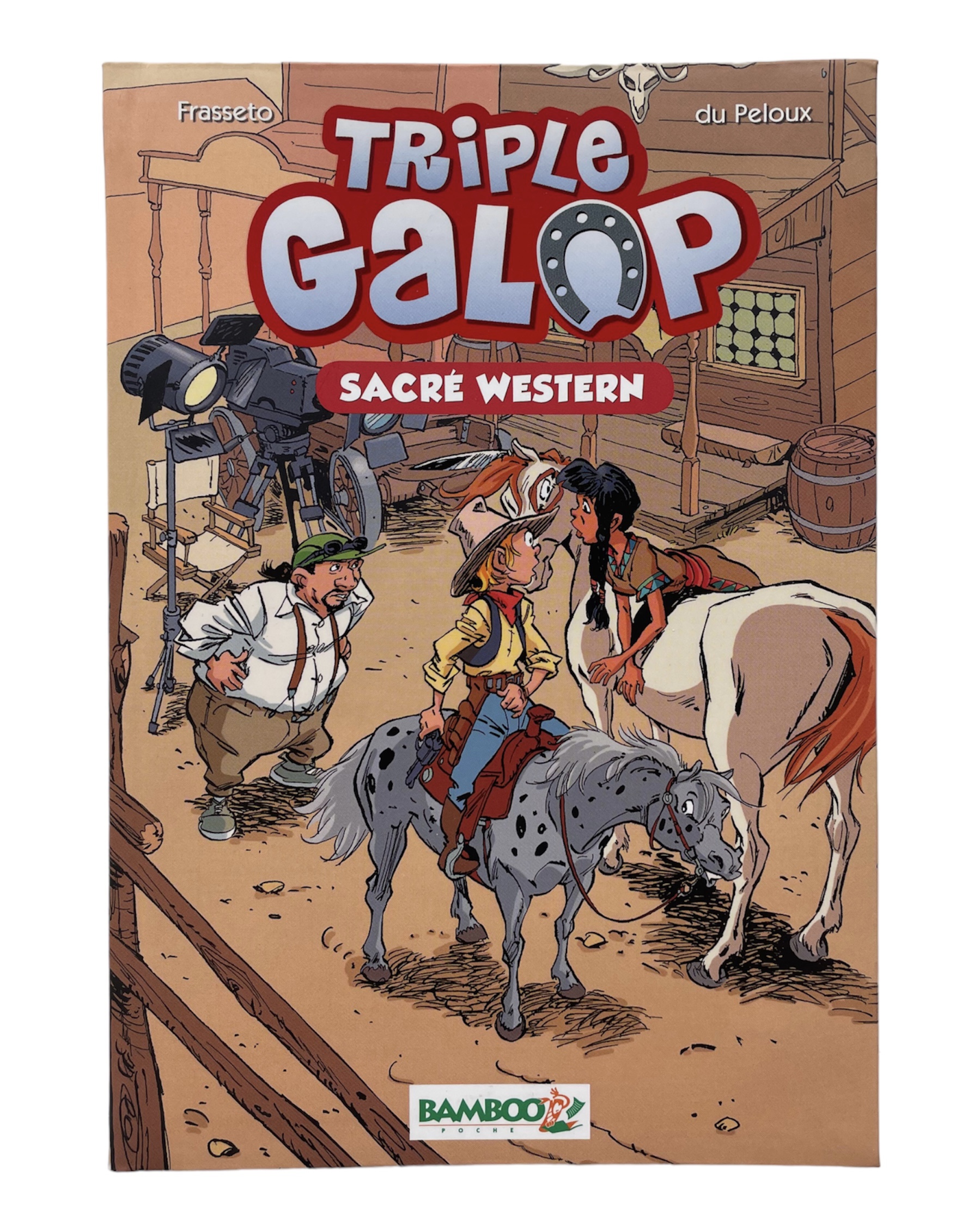 T4 : Le grand réalisateur Steven Spilberthe a choisi le club du Triple Galop pour tourner son nouveau film : un western. Mais c’est sans compter les accès de colère de Monique, la mauvaise humeur de Bébert et les envies des chevaux de faire leurs premiers pas devant les caméras. Car de scènes ratées en cascades non répétées, Mascotte, Ramsès, Blanche-Neige et Poussif vont tout faire pour se faire remarquer et devenir des stars du grand écran. Un nouveau roman plein d’humour et de fantaisie à dévorer au Triple Galop.