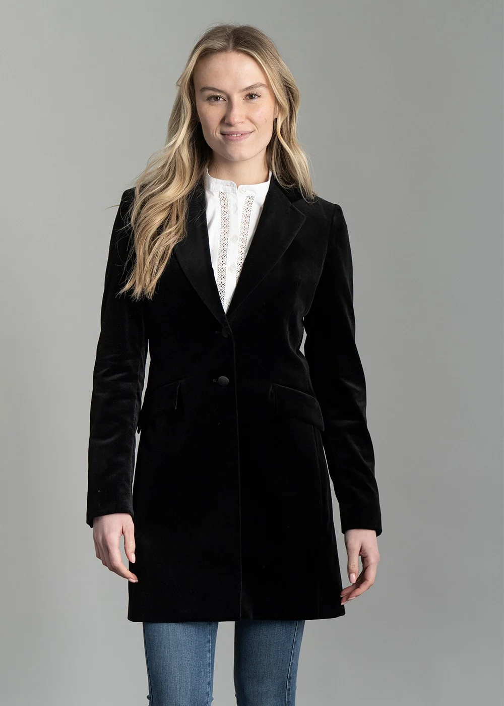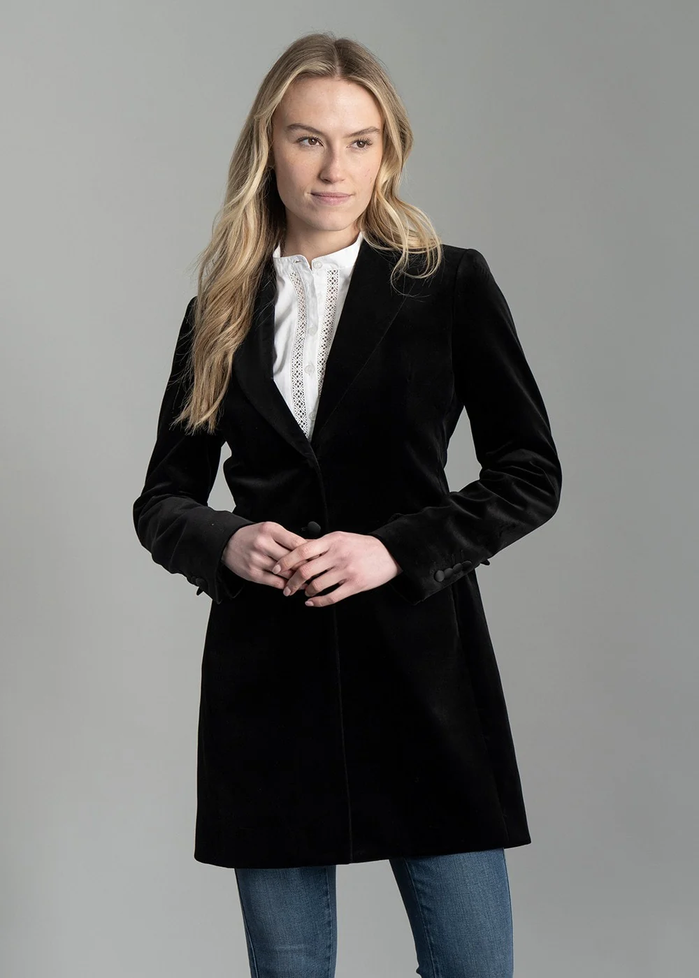 The Vivien Velvet Coat by Taylor and Twill will instantly sophisticate an outfit for a smart day or evening out. It can be dressed down with a pair of jeans and a plain shirt, or an even plainer white t-shirt. Wear with a soft cashmere sweater in the winter.