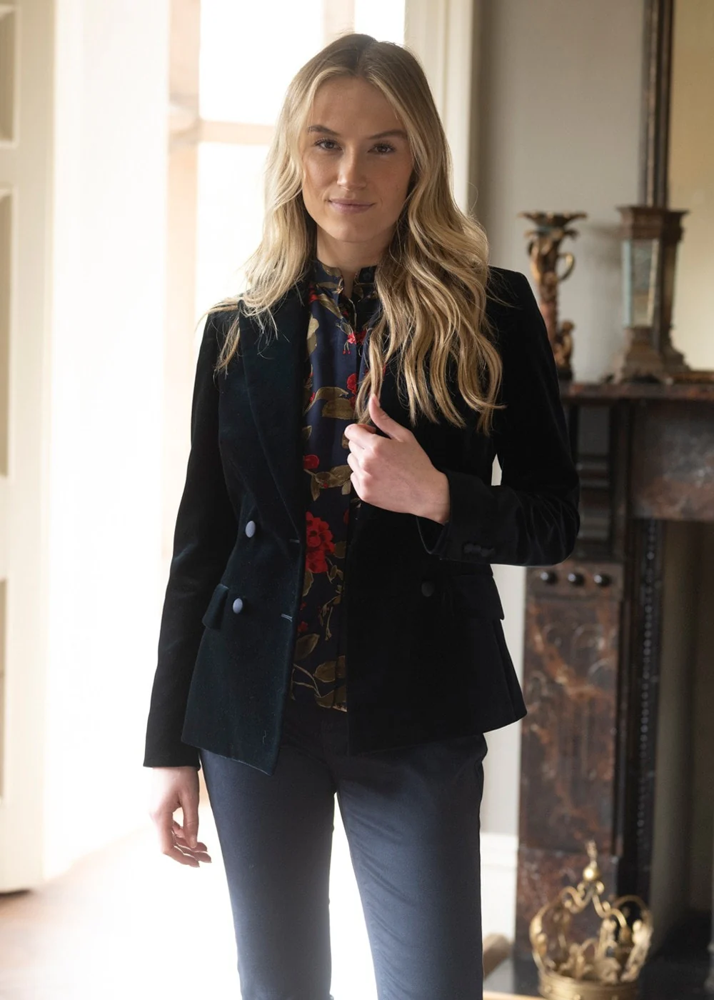 The Vivien Velvet Jacket by Taylor and Twill will instantly sophisticate an outfit for a smart day or evening out. It can be dressed down with a pair of jeans and a plain shirt, or an even plainer white t-shirt. Wear with a soft cashmere sweater in the winter.