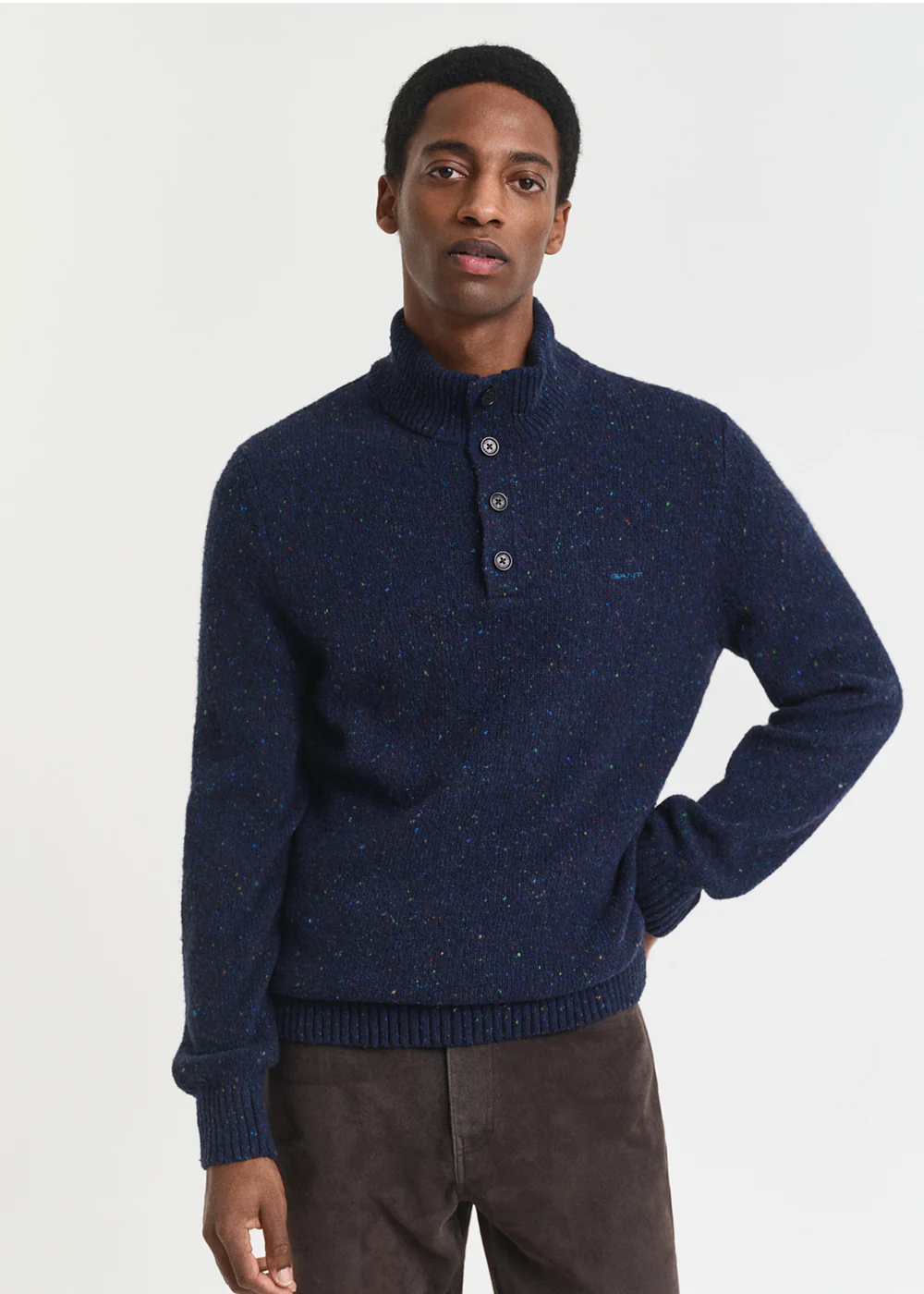 Key Features 31% Recycled Wool, 29% Lambswool, 20% Viscose, 20% Recycled Polyamide Half button closure Regular fit Crew neck Rib detail to collar and cuffs Corozo buttons Fit GuidancePlease refer to our Size Guide for more detailed measurements. Product CareWash with similar colours. Wash with wool detergent. Reshape while wet. Wash and iron inside out. […]
