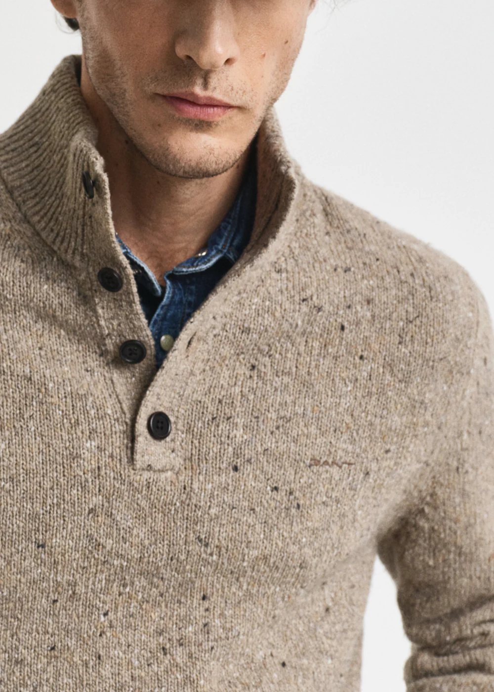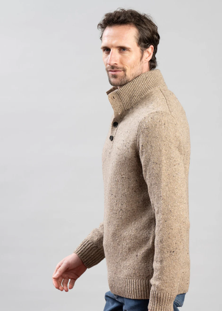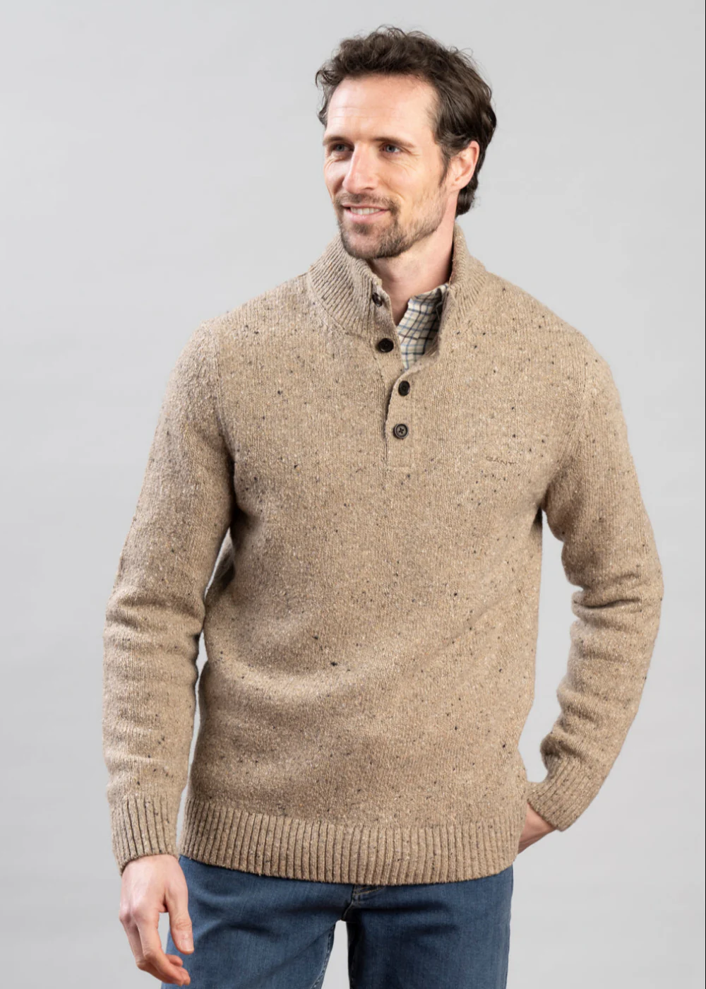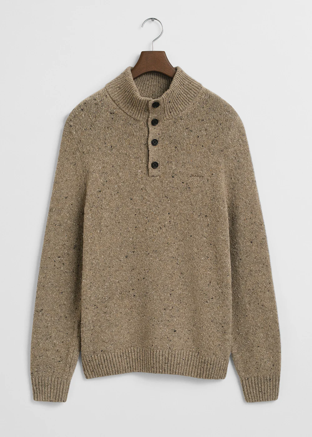 Wool Blend Neps Half Buttoned Jumper